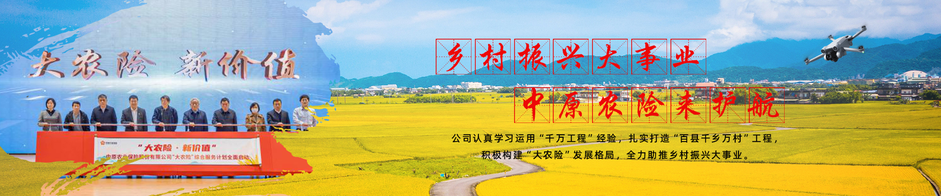 中原農(nóng)險是河南省首家保險法人機構(gòu),“金融豫軍”重要成員。總部設(shè)在鄭州,注冊資本40億元。公司立足中原、面向全國,以促進國家糧食安全生產(chǎn)、保障“三農(nóng)”持續(xù)發(fā)展為己任,服務(wù)鄉(xiāng)村振興和農(nóng)業(yè)農(nóng)村現(xiàn)代化,秉承“規(guī)范運作、創(chuàng)新驅(qū)動、貼心服務(wù)、專業(yè)發(fā)展”的經(jīng)營理念,做中國最懂“三農(nóng)”的保險公司,打造成為客戶信賴、社會尊重、政府滿意、員工幸福的保險企業(yè)。